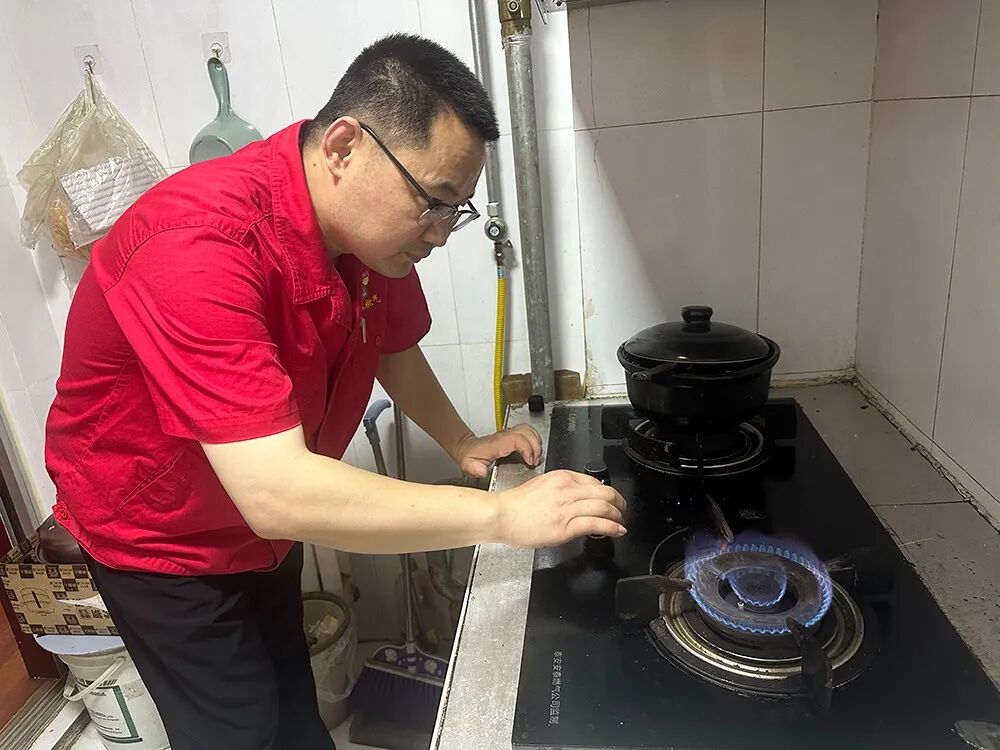 ③入戶安檢時(shí),工作人員會(huì)穿著燃?xì)夤緲?biāo)識(shí)的工裝、出示工作證,并按作業(yè)流程檢查、告知檢查結(jié)果、開(kāi)展安全宣傳、用戶簽字確認(rèn)、發(fā)放燃?xì)獍踩麄鞑牧?,提示安全用氣常識(shí)等。